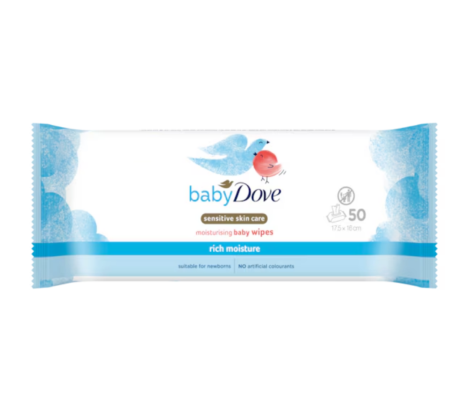 DOVE BABY WIPES SENSITIVE SKIN CARE RICH MOISTURE 50 SHEETS